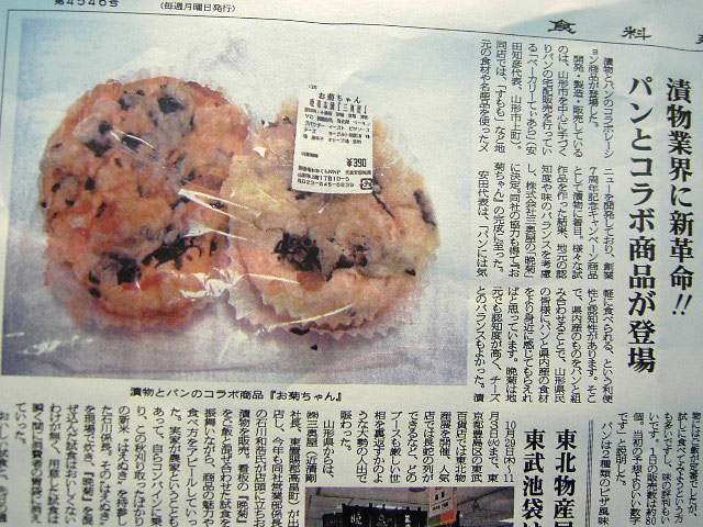 | 2009年11月9日 | 食料新聞に掲載されました。 お菊ちゃん記事掲載 「漬物業界に新革命!パンとコラボ商品が登場」 |