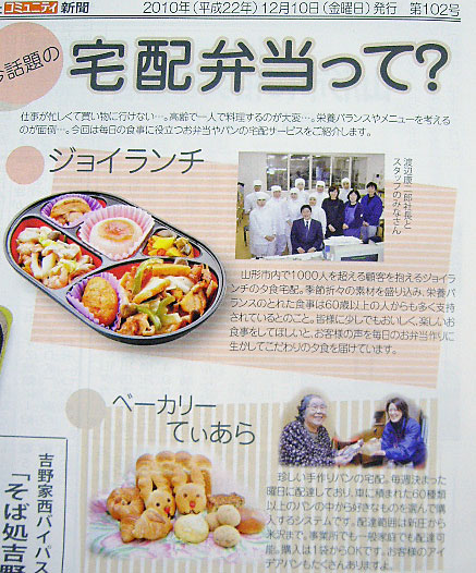 | 2010年12月10日 | やまがたコミュニティ新聞 特集「今話題の宅配弁当って?」に掲載されました! |